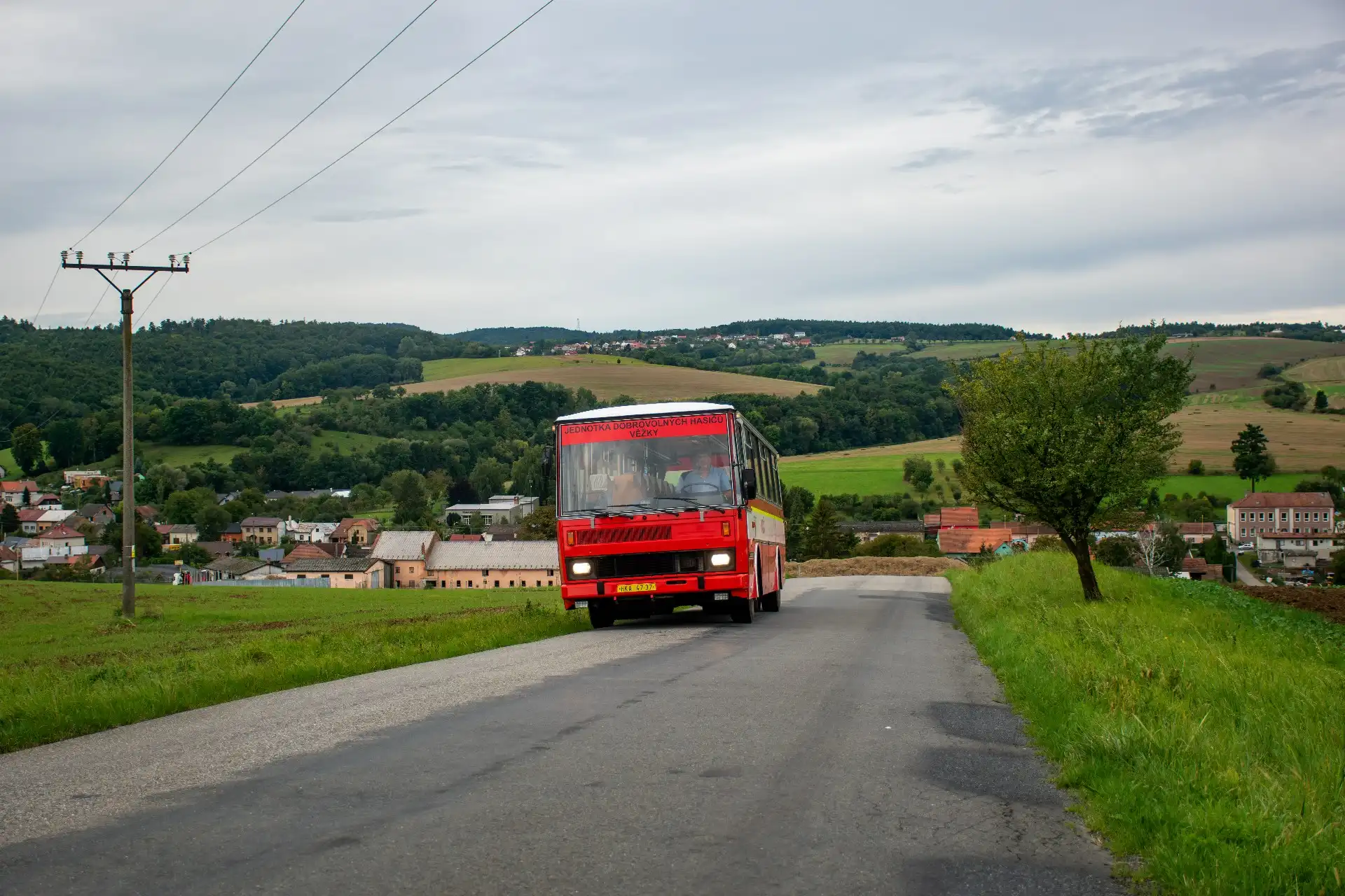Hasičská Karosa na cestě mezi moravskými obcemi. Foto: Marek Hovorka